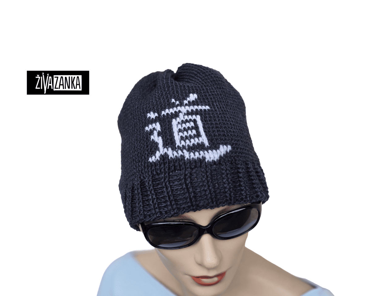 It was handmade from GOTS certified 100% organic wool yarn in charcoal gray and white color.