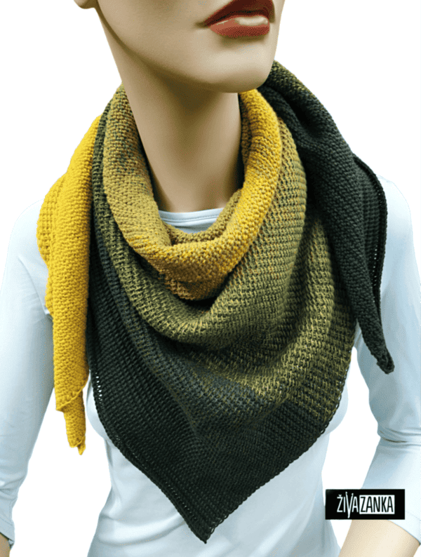 This unique street style triangle scarf is a statement piece due to a combination of color nuances that progress sideways and create a timeless magical look.
