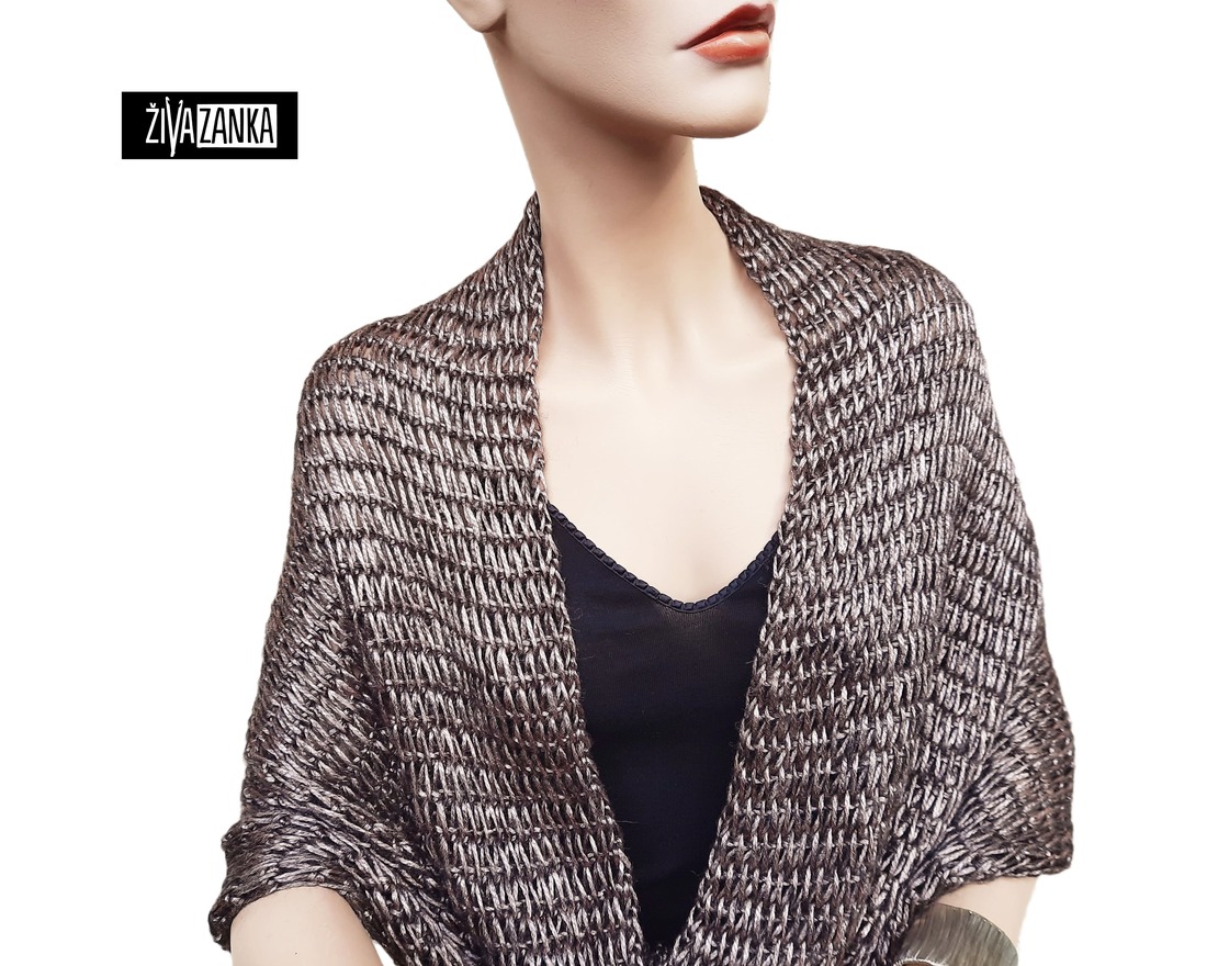 It is a statement fashion piece due to its vesatility and combination of minimalist pattern and mesh lace fabric with metallic shine that creates a look of timeless elegance. It is suitable for celebrations and events or for everyday wear, especially from autumn to spring.