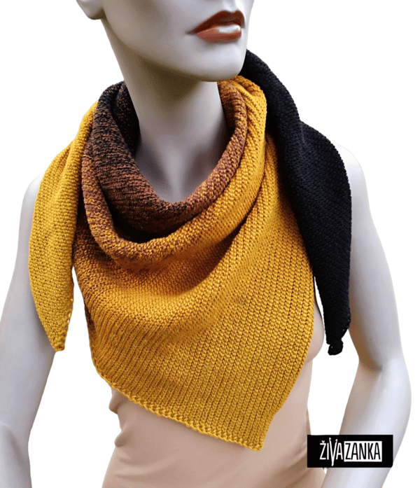 This unique street style triangle scarf is a statement piece due to a combination of color nuances that progress sideways and create a timeless magical look.